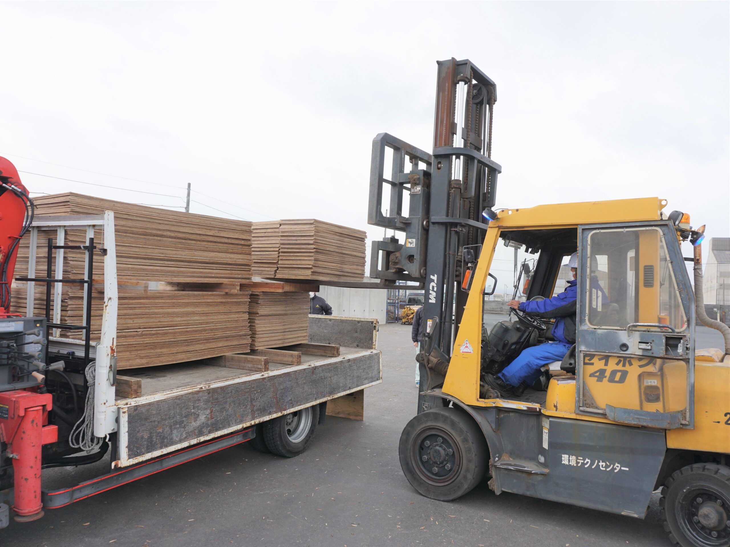 使用後のリサイクル利用が各市町村の採用理由でもあります。当社では木質資源の再利用を可能にする製造システムの