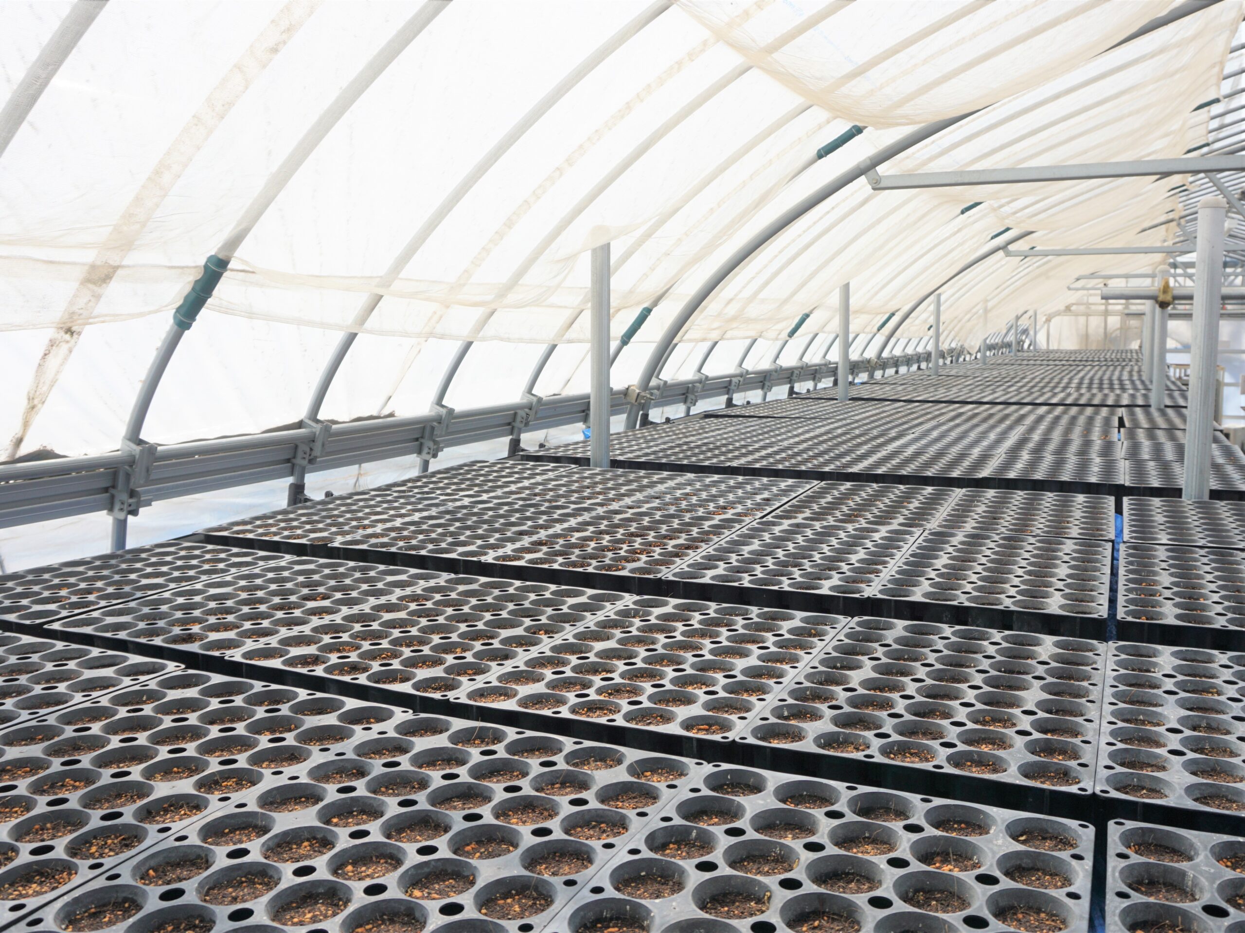 してくれる葉牡丹を植栽しました。工場入口には当社の社名「SEIHOKU」を描く文字植え(写真左)を総合事務所前には交互に色を配置して整然とした印象を与える市松植え(写真右)で整備しました。当社は、今後とも工場全体の清潔感を保ちながら自然と調和した緑化施設を整え、ご来社されたお客様や従業員が心地よく過ごせる空間を提供して参りたいと考えています。