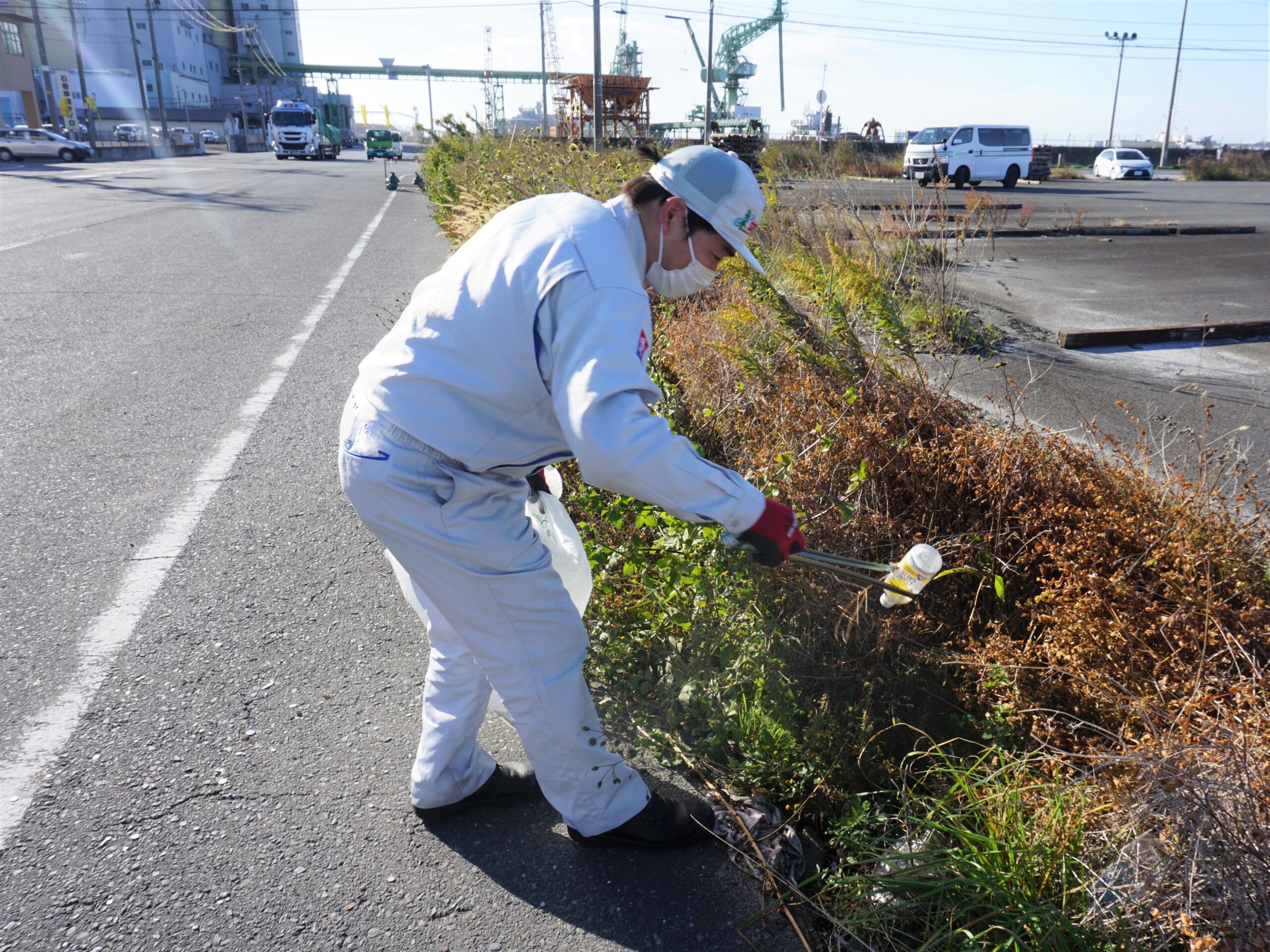 積極的に参加しました。当日は、沿道の草陰に隠れた空き缶、空き瓶、ペットボトルなどを丁寧に回収しゴミのないきれいな街づくりに取り組みました。当社は、今後とも近隣企業をはじめ地域の皆様と連携しながら石巻港の美化活動に協力し、住みよく働きやすい地域社会を目指して参りたいと考えています。