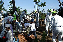 2012年6月16日、宮城県主催の津波で流失した海岸防災林の再生を目的とした「海岸林再生キックオフ植樹」が、宮城県七ケ浜町にて開催されました。宮城県知事をはじめ約300名が、第63回 全国植樹祭開催地の山口県などから贈られたクロマツ2000本とヤマザクラ、コナラ500本を植樹しました。