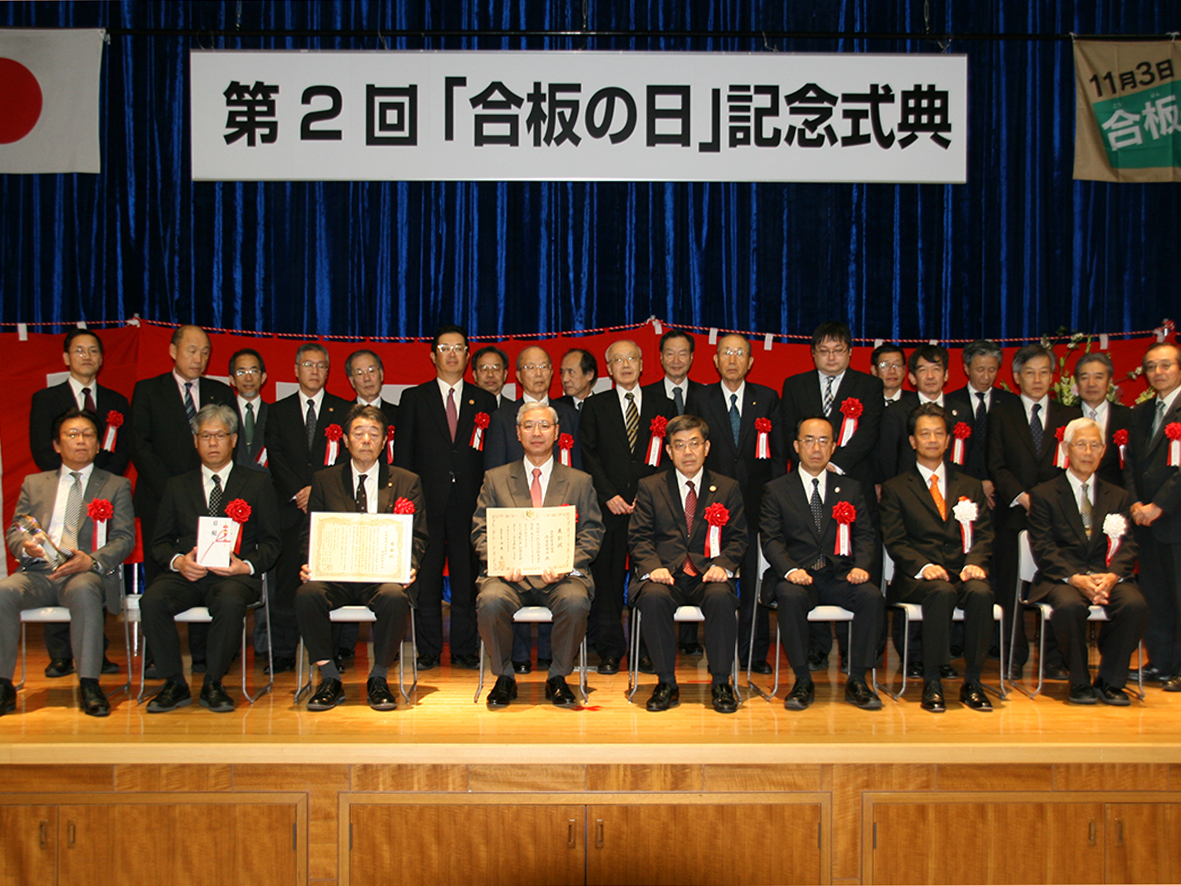 2015年6月22日、森の合板協同組合が今秋に岐阜県揖斐川町で開催される「第39回 全国育樹祭」のメイン会場やステージおよび客席などに地元産材を利用していただくことを目的として、岐阜県東濃産ヒノキ100%の国産材合板(150万円相当)を全国育樹祭岐阜県実行委員会へ寄贈しました。同実行委員会の会長を務める古田肇岐阜県知事へ当社社長の井上篤博は